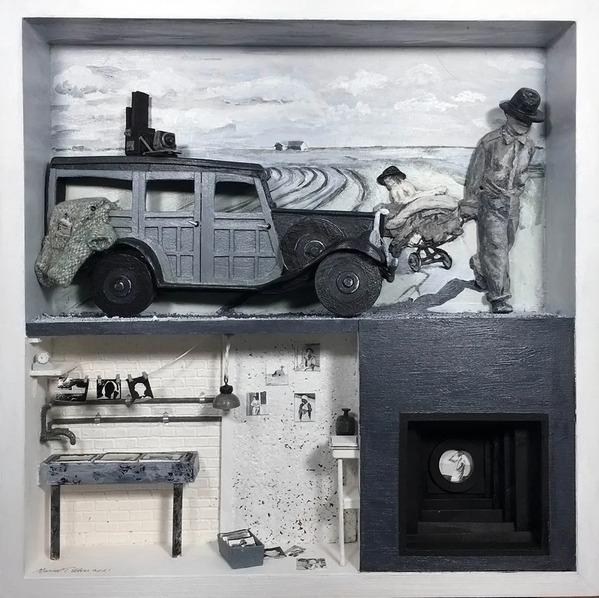 Dorothea Lange (1895-1965)The title was inspired by her last words before her death. This piece depicts her love for the horizon and passionate attachment to the people she photographed. The struggles of humankind were shared with us through her darkroom, Graflex camera, and 1933 Ford C-4 wagon.